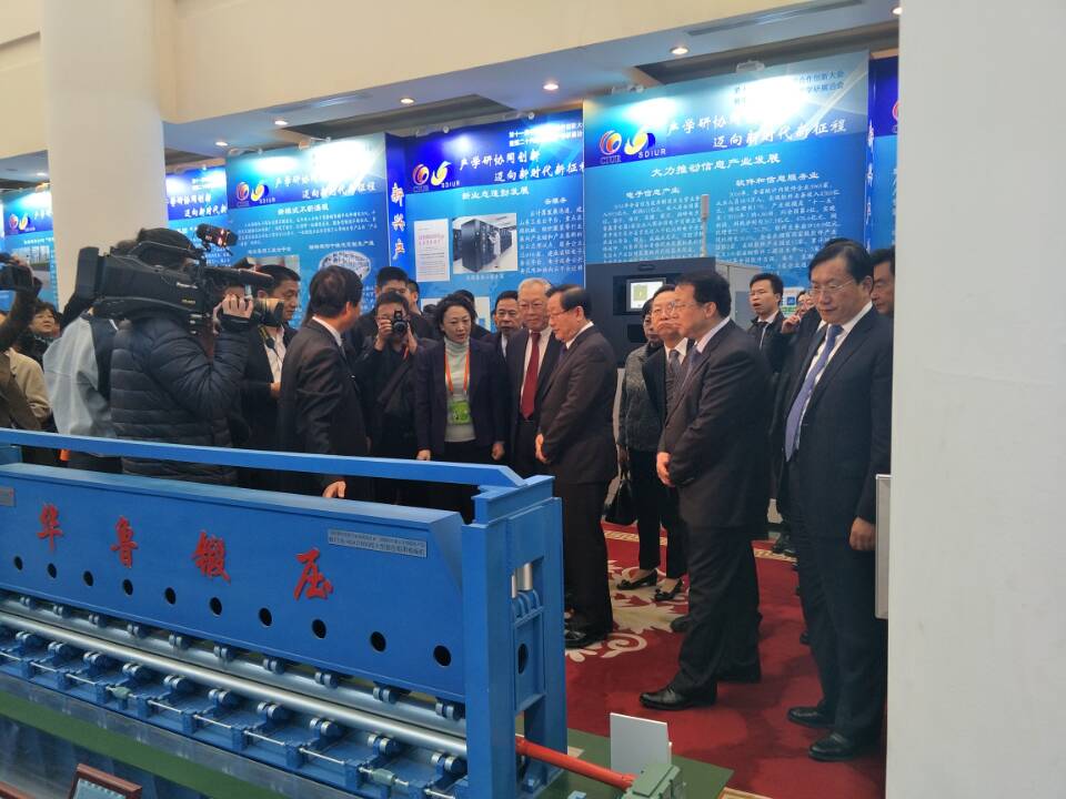 與會代表還參觀了山東省產學研展洽會。山東省委省政府高度重視產學研合作創新,從1991年開始連續25年舉辦產學研展洽會,有計劃、有步驟地組織開展各類產學研活動。在各級黨委政府的有力推動下,我省產學研協同創新不斷向縱深層次推進,合作模式日趨深化,已成為我省企業技術創新的理念和品牌。截至目前,省政府已與24家國內外知名高校、科研院所就產學研合作簽訂了戰略合作協議,建成各類新型研發機構109家,從事技術研發和轉化的人員6000余人;省級以上企業技術中心均與高校科研院所建立了穩定的產學研合作關系,通過產學研合作完成的企業技術項目占比已達95%以上,產學研合作在推動工業新舊動能轉換上發揮了重要作用。展洽會突出新舊動能轉換,以“新技術、新業態、新模式、新產業”促“智慧產業化、產業智慧化、跨界融合化、品牌高端化”實現“傳統產業提質效、新興產業提規模、跨界融合提潛能、品牌高端提價值”為主線,匯聚了威高妙手“s”微創手術機器人、海信計算機輔助手術系統、浪潮天梭M13、中集來福士藍鯨一號海洋鉆井平臺、盛瑞傳動混合動力八擋自動變速器、卡薩帝雙子云裳洗衣機等一大批我省企業通過產學研合作取得的,引領全省工業發展的重大創新項目,展示了近年來山東省產學研合作取得的豐碩成果。展洽會發布了省內外近50家重點高校、科研院所最新科技成果1600余項,省內近400家企業技術難題、人才需求500余項,為企業與知名專家、學者及研發機構搭建了直接交流平臺,達成了一大批重要合作意向。